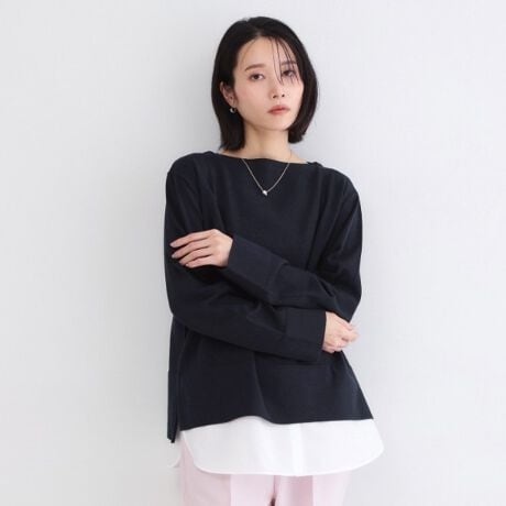 バスクシャツ風に着られる、リラクシーなシルエットのニットです。