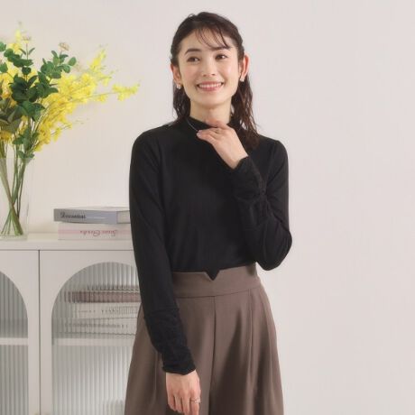 袖口部分はシアー感のあるジャカード素材を使用しており、凹凸感のある表面が特徴。