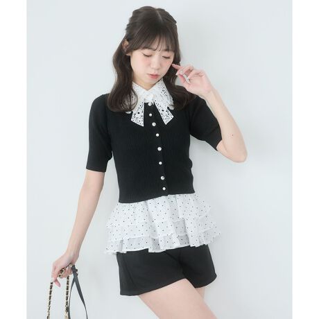 ニットやスウェットのインナーとしてレイヤードし、裾のペプラムをポイントにした着こなしがおすすめ。