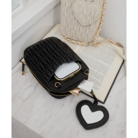 さらに、さっと身だしなみチェックができるハート型のミラーチャーム付きで、実用性とときめきをプラスしました。