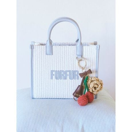FURFURのアイコンアイテムである、ラフィアロゴトートバッグ。存在感のあるレザー素材のロゴパッチが、クラフト感と大人の抜け感を演出します。今シーズンはラフィアシートの範囲を広げ、より清涼感のある仕上がりに。ハンドル端のDカンにはお気に入りのバッグチャームを付けて、自分らしくアレンジを楽しめるのも魅力です