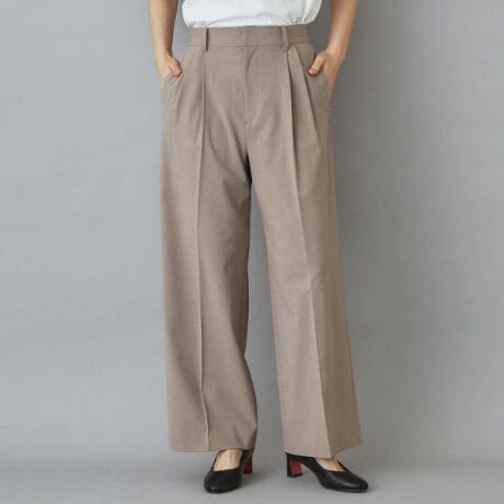 フロントには立体感をつくるタックを入れ、腰まわりにほどよいゆとりを持たせたリラクシーなシルエットに仕上げています。