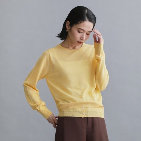 ・ややシアー感のある春らしい素材感で、裾からレイヤードした様なドッキングデザインが特徴のニットプルオーバー。