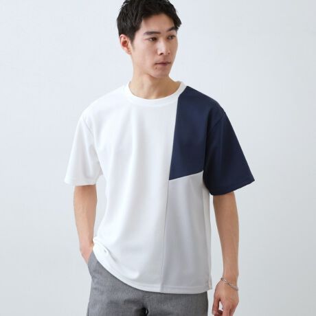 フロントのさりげない配色切替がアクセントになったデザインTシャツ。