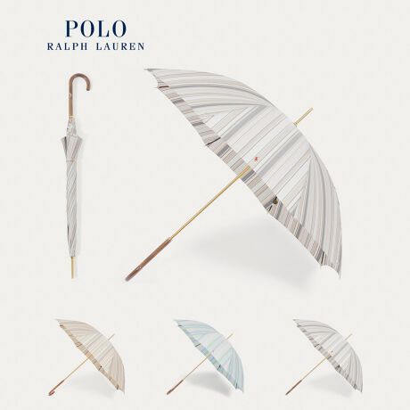 【木製ハンドル】雨傘 長傘 ストライプ ポロポニー ワンポイント