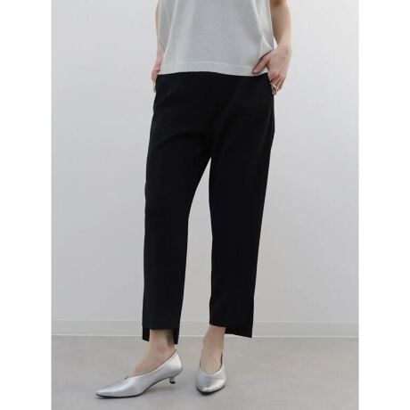 スリットの裾を前後差のあるカットで仕上げ、脚が綺麗に見えるようにこだわったAgaロングセラーのテーパードパンツ。美しいシルエットながらゴム仕様のウエストでリラックスした履き心地を実現。デイリー使いはもちろん、シーズンレスでオフィスシーンやオケージョンにも活躍する一着です。