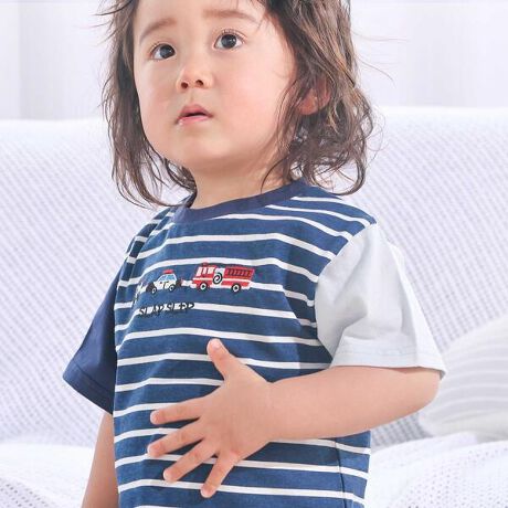 汚れが落ちやすく、のびのび遊べる素材で仕上げたスララクシリーズ!毎日が嬉しくなる男の子用半袖Tシャツ。