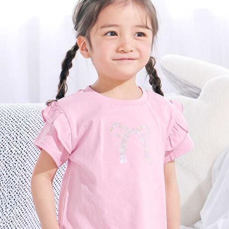 汚れが落ちやすく、のびのび遊べる素材で仕上げたスララクシリーズ!毎日が嬉しくなる女の子用半袖Tシャツ。