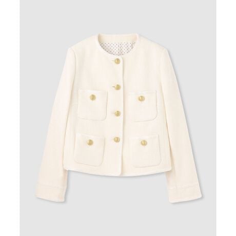 上品な表情のツイードツイル素材を使用したクルージャケット。