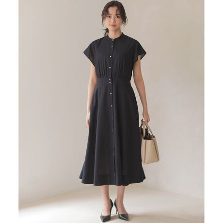 ■デザイン・腰まわりをすっきりと見せつつ、裾のたっぷりとした分量が程よく広がる美しいシルエットに仕上げました。・トップス部分は、ややゆったりとしたシルエットで、袖は肩が隠れる長さでスッキリと着ていただけます。・甘くなりすぎないように全体のシルエットやバンドカラーの形状など『締め』ポイントをつくり大人の甘さを表現。・歩く度に静かに揺れ、女性らしさを後押ししてくれます。・ウエストは背面をゴム仕様にすることで着心地ときれい見えを両立。合わせる小物次第でスタイルの幅が広がります。
