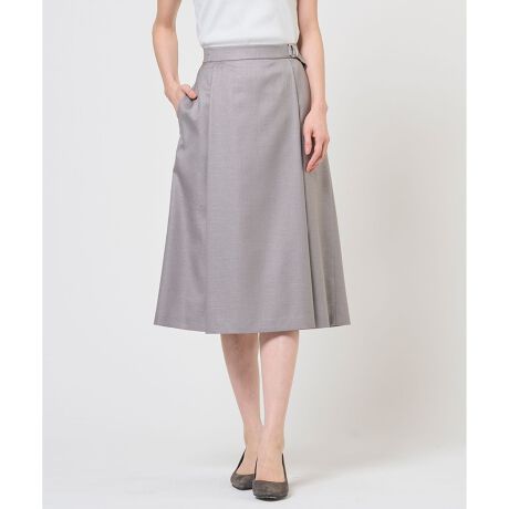 ■デザインフロントに施したタックと広がりすぎないAラインシルエットが、女性らしさを引き立てるミディ丈スカート。共布ベルトとメタルパーツのディテールが、ウエスト周りに洗練されたアクセントをプラス。トップスをインしたスタイリングもすっきりと決まります。後ろウエストはゴム仕様なので、きちんと感がありながらも、締め付け感の少ない快適な穿き心地を叶えます。トレンドに左右されず、長く愛用できるベーシックなアイテムです。総裏ありです。