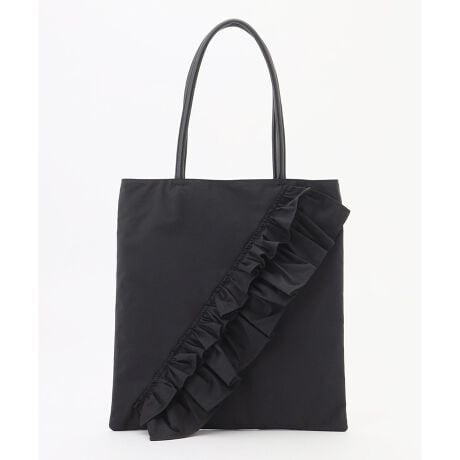 ■デザイン・素材・軽やかでフラットなフォルムに、斜めに配置されたラッフル(フリル)ラインが大人かわいい感性をプラス。・日常使いから、オケージョンシーンでサブバッグとしてなど、幅広いシーンで活躍します。・持ち手には合皮素材を使用し、安定感のある持ち心地に。・本体は軽量でA4サイズもすっぽりおさまるサイズ感で収納力は十分です。・カジュアルにもフェミニンにも合わせやすいデザインで、季節を問わずお使いいただける万能トートバッグです。