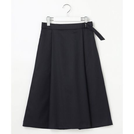 ■デザインフロントに施したタックと広がりすぎないAラインシルエットが、女性らしさを引き立てるミディ丈スカート。共布ベルトとメタルパーツのディテールが、ウエスト周りに洗練されたアクセントをプラス。トップスをインしたスタイリングもすっきりと決まります。後ろウエストはゴム仕様なので、きちんと感がありながらも、締め付け感の少ない快適な穿き心地を叶えます。トレンドに左右されず、長く愛用できるベーシックなアイテムです。総裏ありです。