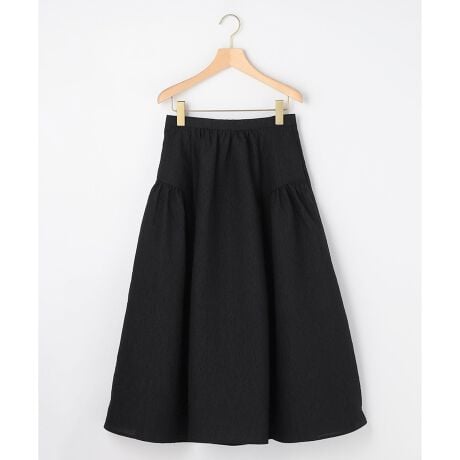 ■デザイン・切り替えギャザーデザインがアクセントになったふんわりとしたボリュームあるスカートです。・凹凸感あるジャカードの表情がトレンド感を増し、甘くなりすぎない大人な印象です。・後ウエストゴム使用でお腹回りも楽に着こなせます。・上品にもカジュアルにも着まわせるトレンドライクなスカートです。