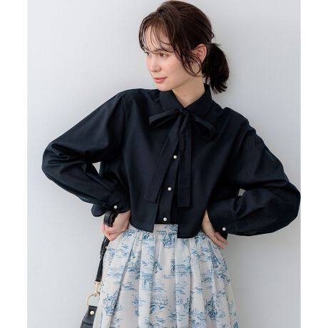 ■デザイン・ベーシックなシャツと短丈シャツを重ねたような、長めのデザインヨークがポイントのシャツ。・ボトムにインしてヨーク部分だけ出すと短丈トップスとしても楽しめます。・丈感をアレンジして全身バランスが調整可能なブラウスです。・前を開けて羽織にも。ライトアウターとしても重宝してくれます。・全体的にやや辛口なディテールなので、パール釦で甘さと女性らしさをプラス。横から見たフレアシルエットもこだわりました。・全体のシルエットや襟や袖の形状など、少しだけ柔らかさのある要素を取り入れています。・スカートやパンツと合わせるだけで気の利いたコーディネートに。・スタイリングによって綺麗めからカジュアルまで雰囲気をかえられる万能ブラウスです。