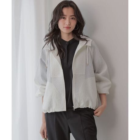 【スタッフコメント】▼身長158cm|着用サイズM (通常着用サイズM)素材感や、丸みのあるシルエットが女性らしいスポーティブルゾンです。シアー感が軽やかでスタイリングが一気に春めくおすすめのNEWアイテムです。