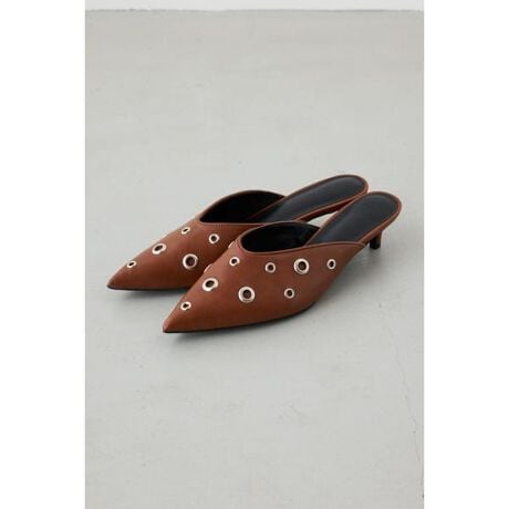 ■ハトメデザインミュール■ポイントハトメディテールがアクセントになった、エッジの効いたミュールサンダル。■ディテールアッパーに施したハトメデザインが、シンプルながら存在感のある印象に。さっと履けるミュールタイプで、デイリーに使いやすい仕様です。安定感のあるソールで、長時間の着用も快適にサポートします。■スタイリングデニムやワイドパンツと合わせて、足元にポイントを効かせたカジュアルスタイルに。ワンピースやスカートと合わせれば、程よく辛口な大人コーディネートが完成。モノトーンコーディネートのアクセントとして取り入れるのもおすすめです。※お取り扱い上のご注意・アッパーにハトメを使用したデザインです。・足に直接当たらない仕様ですが、足の形や屈曲位置には個人差があるため、着用時に当たる場合がございます。あらかじめご了承ください。・濡れたまま放置すると、湿気によりカビが発生する恐れがありますので、ご注意ください。[注意事項]※画像の商品はサンプルです。実際の商品と仕様、加工が若干異なる場合があります。※画像の商品は光の照射や角度、お使いのモニター環境により、実物と色味が異なる場合がございます。※着用、お取り扱いの際は、アテンションタグをご確認ください。