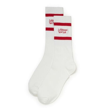 フロントにロゴ刺繍をあしらったラインソックス。