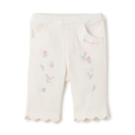 裾スカラップがかわいいお花の刺繍をちりばめた7分丈パンツです。