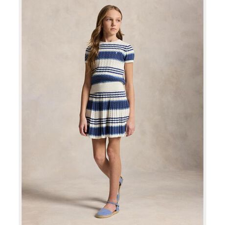 (ガールズ 7才〜16才)ストライプド ケーブル コットン セーター & スカート
