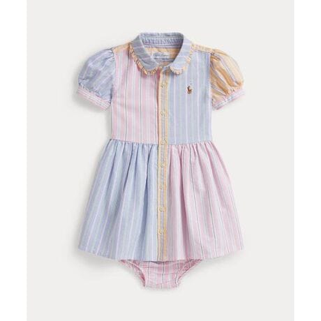 アイコニックなファンシャツに可愛らしいひねりをプラスしたフィット & フレアのシャツドレス。糸染めのコットン オックスフォードを使用し、マルチカラーのポニー刺繍で仕上げたアイテム。・フィット & フレアのシルエット・左胸にマルチカラーのシグネチャーのポニー刺繍・フリル付きのクラブカラー / ボタン付き前立て・半袖、ボタン付きバレルアームバンド / シャーリング入りのウエスト・お揃いのブルマー付き※商品の色味は、光のあたり具合など諸条件により色感が多少異なって見える場合がございますので予めご了承下さい。※注意:柄の配置は、商品によって異なります。 【素材】・ドレス 本体:綿 100% 装飾部分を除く ショーツ 本体:綿 100%【生産国】インドネシア