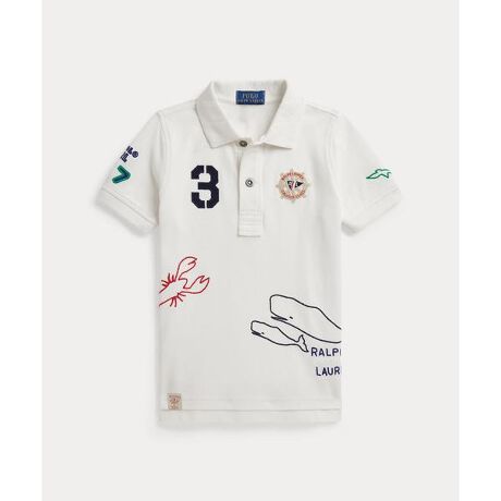 全体にあしらったノーティカル風のプリント、アップリケ、刺繍で遊び心たっぷりにアップデートしたポロシャツ。・リブのポロカラー / 織り地の襟裏 / 2つボタンの前立て・半袖、リブアームバンド・全体にシグネチャーのアップリケ、刺繍、プリント・右裾にRalph Lauren Marine Trading Coのラベル / テニステール※注意:柄の配置は、商品によって異なります。 【素材】・本体:綿 100% 装飾部分を除く【生産国】マカオ