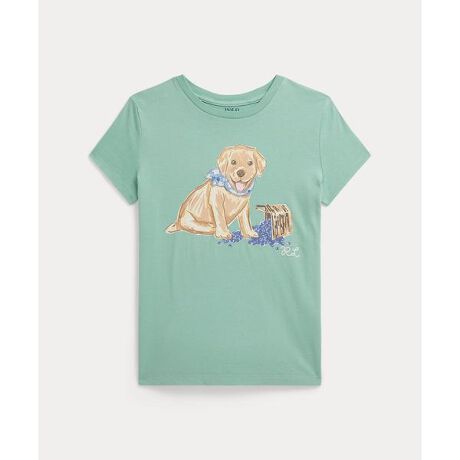 ウォッシュ加工で柔らかさをプラスし、可愛らしい子犬とひっくり返ったブルーベリーのバスケットのプリントをあしらったコットンジャージーTシャツ。・クルーネック・キャップスリーブ・フロント中央に犬のプリントとRLのチェーンステッチ刺繍・右裾にRL25のクロスステッチ※商品の色味は、光のあたり具合など諸条件により色感が多少異なって見える場合がございますので予めご了承下さい。 【素材】・本体:綿 100% 装飾部分を除く【生産国】インド