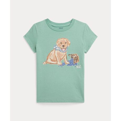 [型番:CWPOTSHR8020524]ウォッシュ加工で柔らかさをプラスし、可愛らしい子犬とひっくり返ったブルーベリーのバスケットのプリントをあしらったコットンジャージーTシャツ。・クルーネック・キャップスリーブ・フロント中央に犬のプリントとRLのチェーンステッチ刺繍※商品の色味は、光のあたり具合など諸条件により色感が多少異なって見える場合がございますので予めご了承下さい。 【素材】・本体:綿 100% 装飾部分を除く【生産国】インド