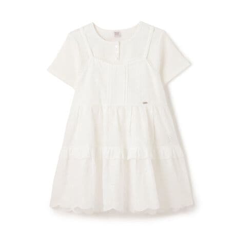 リブ素材のTシャツと、ナチュラルなレース素材のチュニックがセットになったレイヤードアイテム。