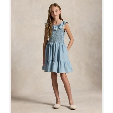 ニューイングランドの気取らない海辺の魅力にインスパイアされたドレス。インディゴ染めのコットンシャンブレー、スモッキングの入ったトップス部分、ブルーベリーの刺繍をあしらったフリルのレイヤーを融合したアイテム。・ノースリーブ、フィット & フレアのシルエット・ラウンドネック / ブルーベリーの刺繍とスカラップトリムをあしらったフリルのレイヤー・スモッキングの入ったトップス部分・サイドシームポケット / ヒダの入った裾 / 右裾にPoloの刺繍・生地や布張りの室内装飾品に色移りすることがあります※商品の色味は、光のあたり具合など諸条件により色感が多少異なって見える場合がございますので予めご了承下さい。 【素材】・本体:綿 100% 装飾部分を除く/伸縮素材を除く【生産国】インド