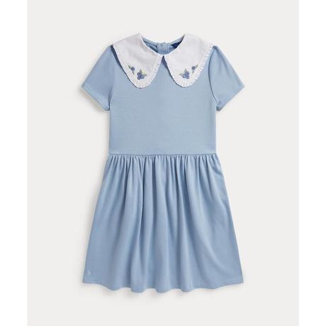 ニューイングランドの気取らない海辺の魅力にインスパイアされたポンチドレス。フィット & フレアのシルエットと、フリルトリムとブルーベリーの刺繍でアクセントをプラスしたコントラストの効いたブロードクロスの襟が特徴。・フィット & フレアのシルエット・右裾にシグネチャーのポニー刺繍・ブロードクロスのピーターパンカラー、フリル付き / 襟にブルーベリーの刺繍 / 背面中央にボタン付きプラケット・半袖・シャーリング入りのウエスト / サイドシームポケット※商品の色味は、光のあたり具合など諸条件により色感が多少異なって見える場合がございますので予めご了承下さい。 【素材】・本体:ポリエステル 69%、レーヨン 29%、ポリウレタン 2% 装飾部分を除く【生産国】インドネシア
