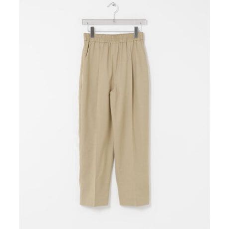 センタープレスが縦のラインを強調し、履くだけでスタイルアップを叶えてくれる一本ですご自宅の洗濯機でケアができるため、デイリーに気兼ねなくお使いいただけます足首に向かって細くなるテーパードシルエットが、体のラインを拾わずに上品に見せてくれます。ウエストは調整可能なドロスト仕様で、ご自身のジャストなサイズ感で着用が可能。