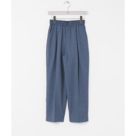 センタープレスが縦のラインを強調し、履くだけでスタイルアップを叶えてくれる一本ですご自宅の洗濯機でケアができるため、デイリーに気兼ねなくお使いいただけます足首に向かって細くなるテーパードシルエットが、体のラインを拾わずに上品に見せてくれます。ウエストは調整可能なドロスト仕様で、ご自身のジャストなサイズ感で着用が可能。