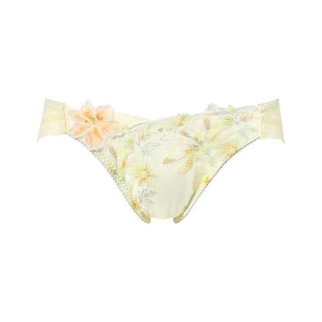 ●やわらかいはきごこち バックはやわらかく伸びるベア天竺素材で、はきごこちがよい・フロントは裏打ち付きで透けにくい・はきこみ丈:あさめ(ローライズ)フロントのレースには繊細に輝くラメ糸を散りばめ、華やかなアップリケをワンポイントにあしらった優雅で贅沢なショーツ。M・Lサイズはフロントサイドに、LL・3Lサイズはフロント上辺に透け感のあるチュールを用いて、軽やかなデザインに仕上げました。あさめのはきこみ丈で甘すぎずすっきりとした印象に。※お洗濯は、必ず「取扱い表示」にしたがってください。