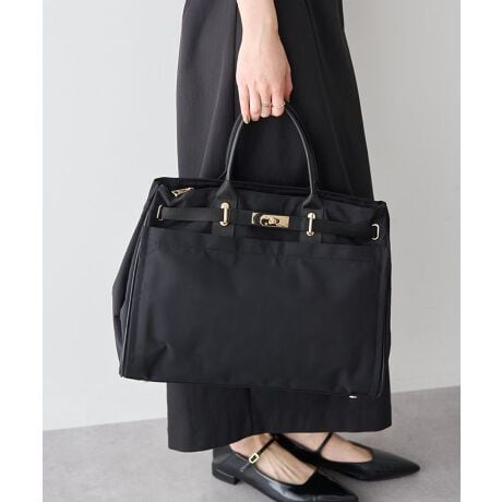 高級感のあるクロア型がおしゃれな、ベルトデザインのトートバッグ。