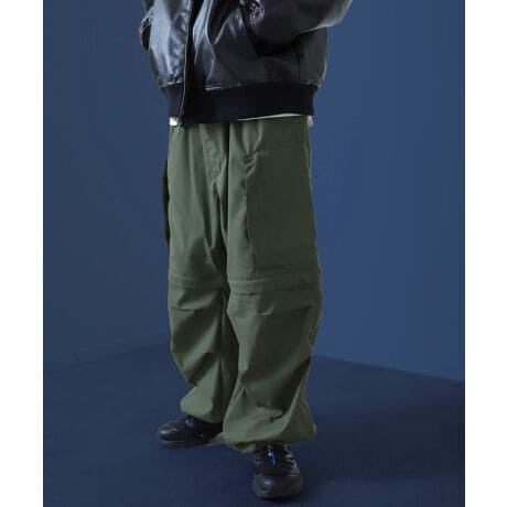 膝から取り外しができ、開けたままの着こなしやショートパンツとしても使える3WAY仕様。