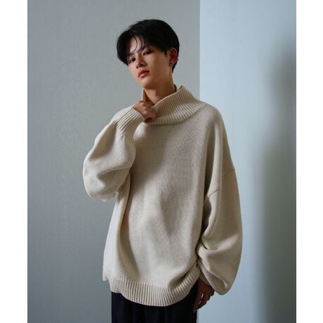 トレンドのハイネック(ボトルネック)でシンプルながら存在感のある1着。