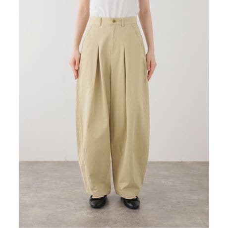 深めのタックをいれたワイド型で、裾に向けて丸みをつけたカーブシルエット。