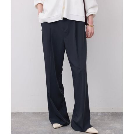 フロントのタックが立体感を生み出し、リラックスした印象を与えます。