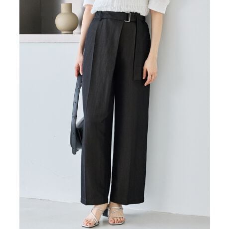 ウエストに施したベルトディテールがアクセントになった、デニムライクパンツ。