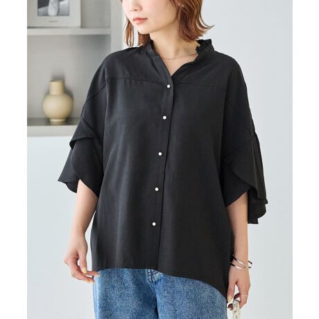軽やかに揺れるフレアスリーブと、さりげない甘さを添えるフリル衿が印象的なスキッパーブラウス。
