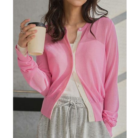 着るだけで着映えるバイカラーがポイントのシアーニットカーディガン。