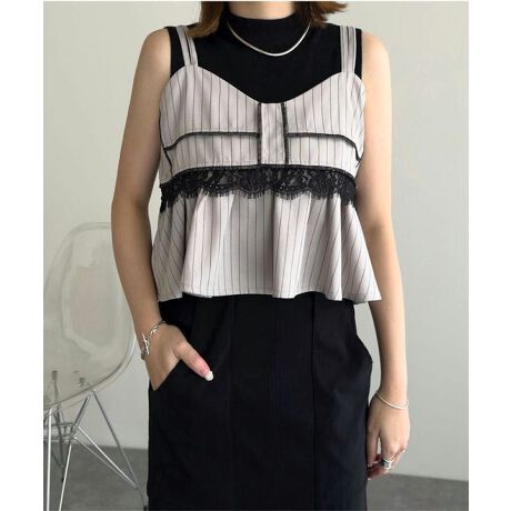 レース切替ストライプキャミビスチェ [C7778]