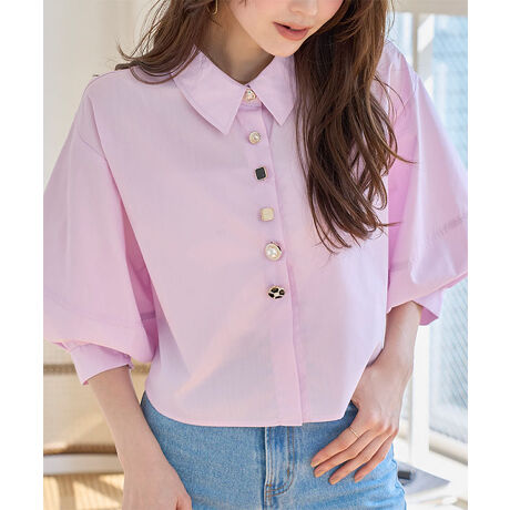 多ボタンショート丈フレアブラウス [C7779]