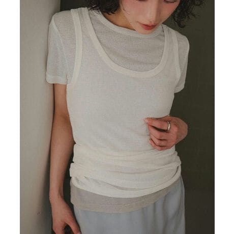 マルイウェブチャネル   /   神戸レタス   /   トップス   /   Tシャツ・カットソー   /   シアーカットソータンクトップ×半袖トップスセット [C7780]