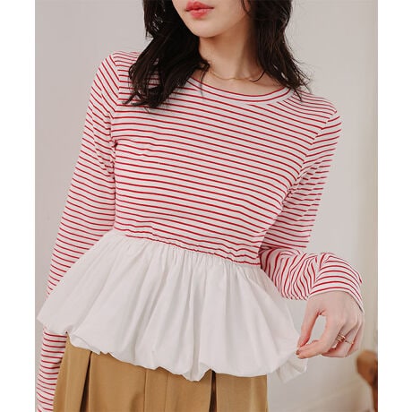 ペプラム切替バルーンコットンロンT [C7801]