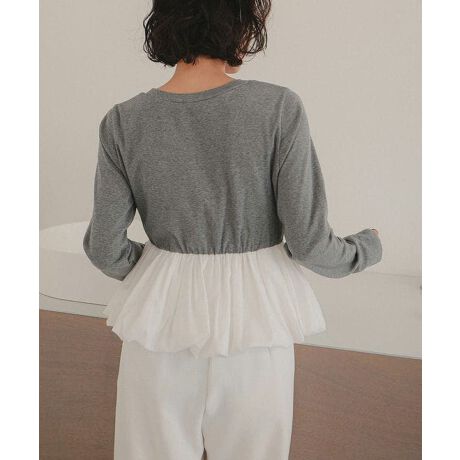 360度どこから見てもメリハリのあるシルエットが完成するバイカラーペプラムロンTです。