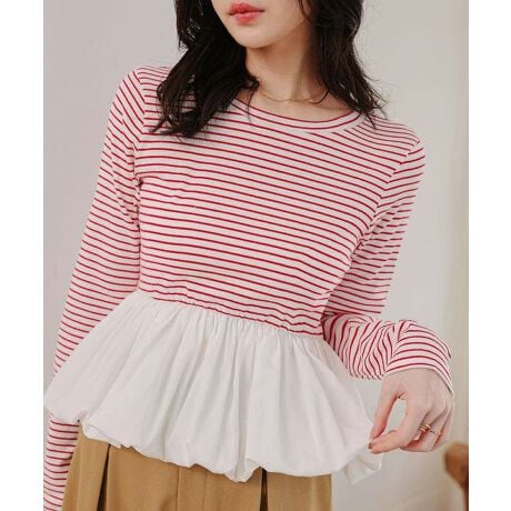 ベーシックなクルーネックカットソーにふんわり広がるバルーンシルエットがガーリーな可愛さをプラス。