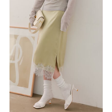選べる2タイプミディorロング裾レースサテンスカート [M4360]