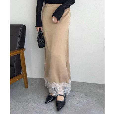 マルイウェブチャネル   /   神戸レタス   /   すべてのスカート   /   スカート   /   選べる2タイプミディorロング裾レースサテンスカート [M4360]
